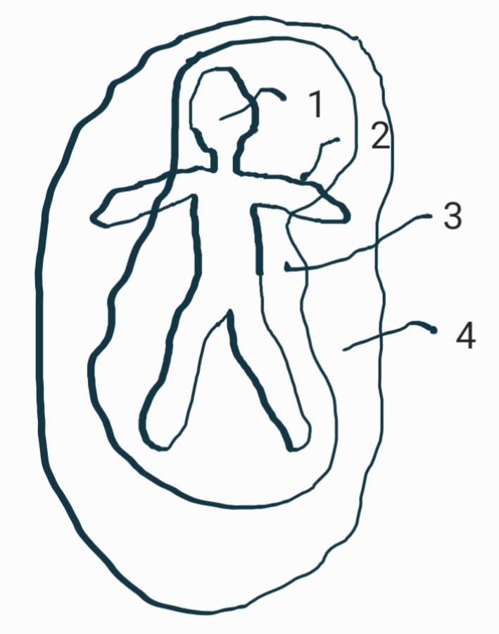 1) Soma, corpo fisico; 2) Duplo etérico ou holochacra ou corpo energético; 3) Perispírito ou psicossoma ou corpo astral ou corpo bioplasmático; 4) Mentalsoma ou corpo mental; 5) Corpo espiritual ou causal; |